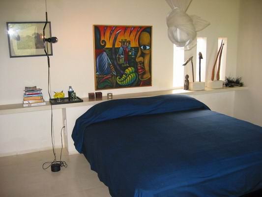 In addition, custom made ivory and polished cement tiles make elegant statements in all pavilions, while the walls are either finished in cream-color sandstone or plastered and painted in Canton green or Tuscan terracotta. Each bedroom has a king size bed, a separate dressing area, a bathroom with an attached open outdoor patio with a freestanding bathtub and shower. Ceiling fans cool the 2 double bedrooms.