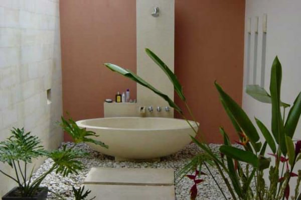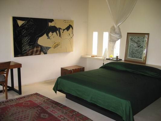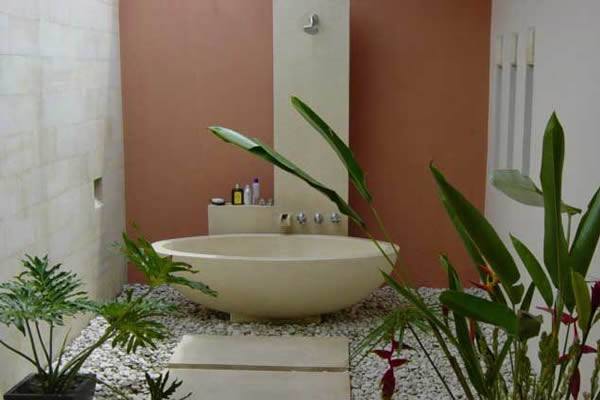 In addition, custom made ivory and polished cement tiles make elegant statements in all pavilions, while the walls are either finished in cream-color sandstone or plastered and painted in Canton green or Tuscan terracotta. Each bedroom has a king size bed, a separate dressing area, a bathroom with an attached open outdoor patio with a freestanding bathtub and shower. Ceiling fans cool the 2 double bedrooms.